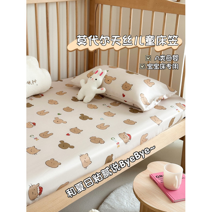 A類莫代爾天絲兒童床笠夏季涼感冰絲幼兒園小寶寶午睡拼接床墊罩