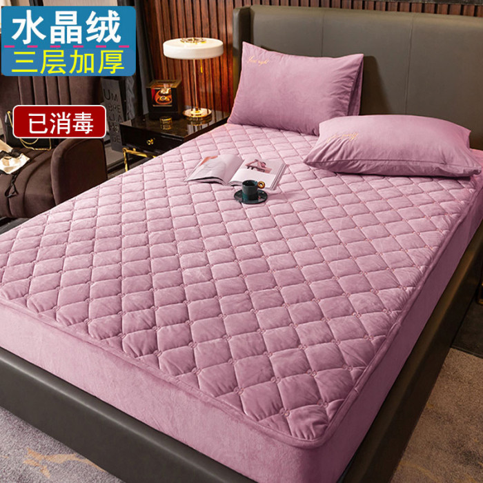 水晶絨夾棉床笠單件牛奶絨冬季加厚床罩床墊套保暖珊瑚絨床立防滑