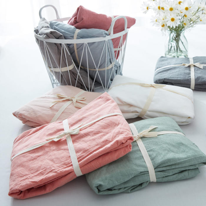 簡約純棉床單床笠單件純色水洗棉雙人單人水洗棉全棉簡約日式純色
