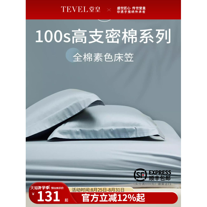 TEVEL/堂皇全棉床笠單件高支高密床墊保護套簡約貢緞素色床上用品