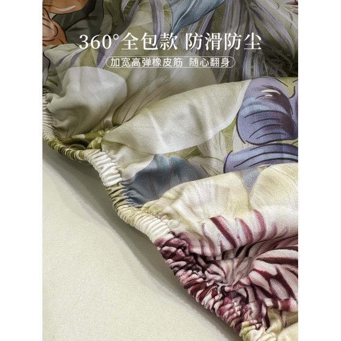 輕奢數碼印花純棉床笠加高款1米5/1.8x2.0床罩單件全棉床套防塵罩