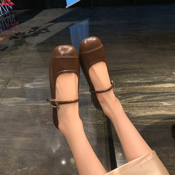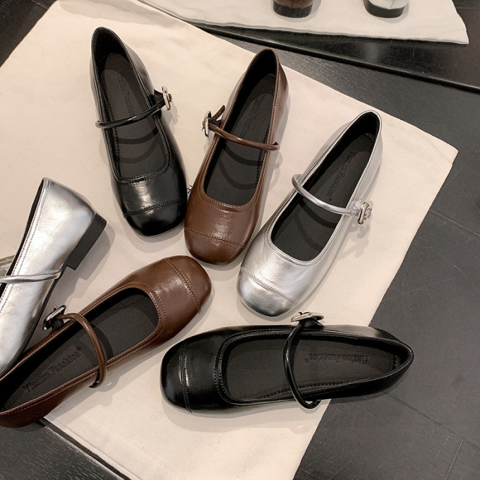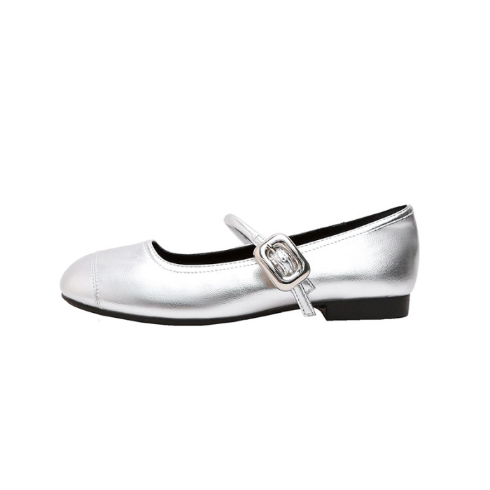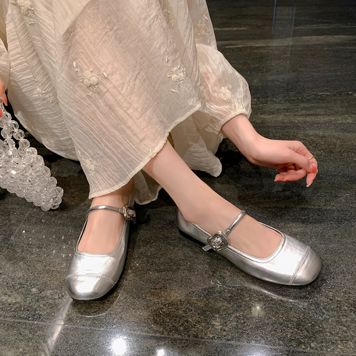 法式配裙子銀色圓頭瑪麗珍鞋女2025年春季款平底內增高一字帶單鞋