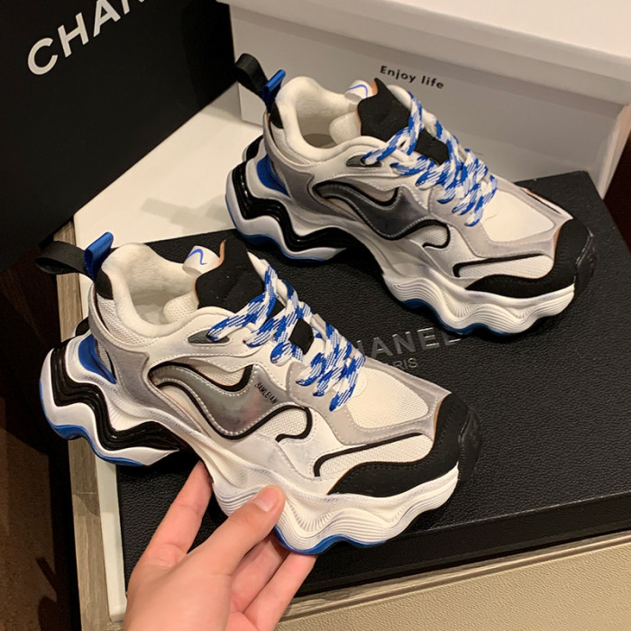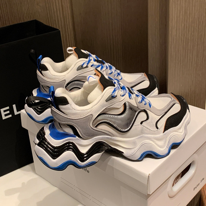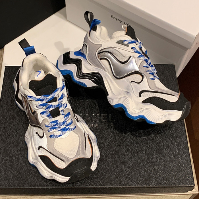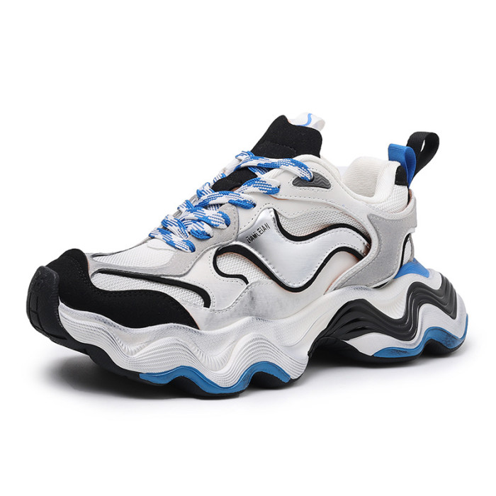 2025春夏男女同款銀色波浪厚底老爹鞋增高舒適百搭網面髒髒鞋系列