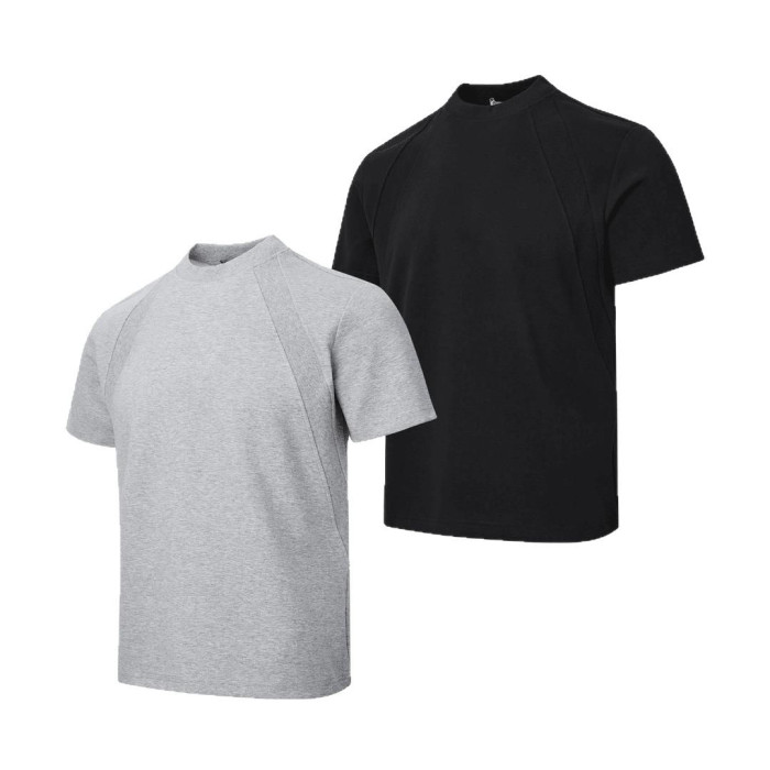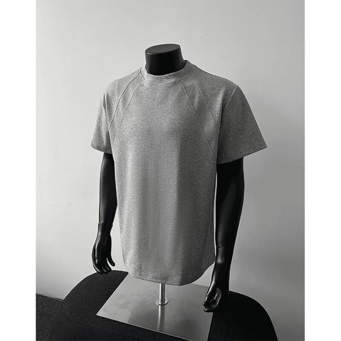 美式重磅正肩結搆潮牌短袖男t恤boxy版型圓領空氣層拼接短袖t恤