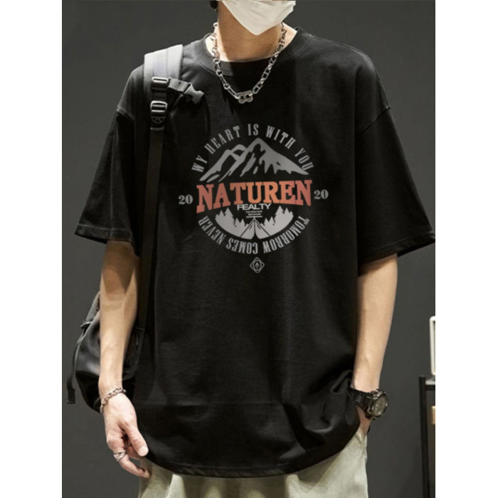 100%重磅純棉大碼男t恤山峰短袖夏季寬松美式正肩港風潮牌ins新款