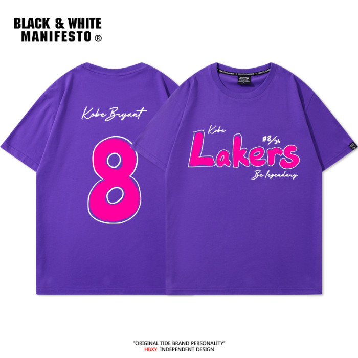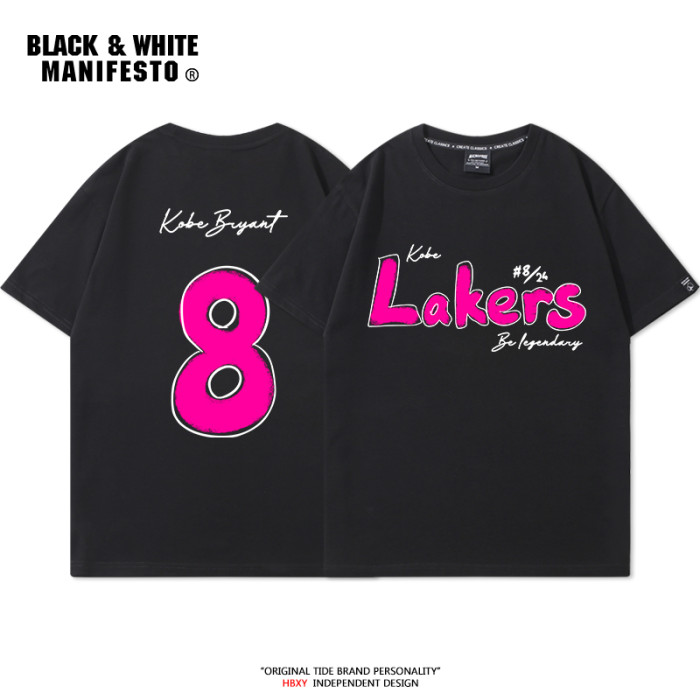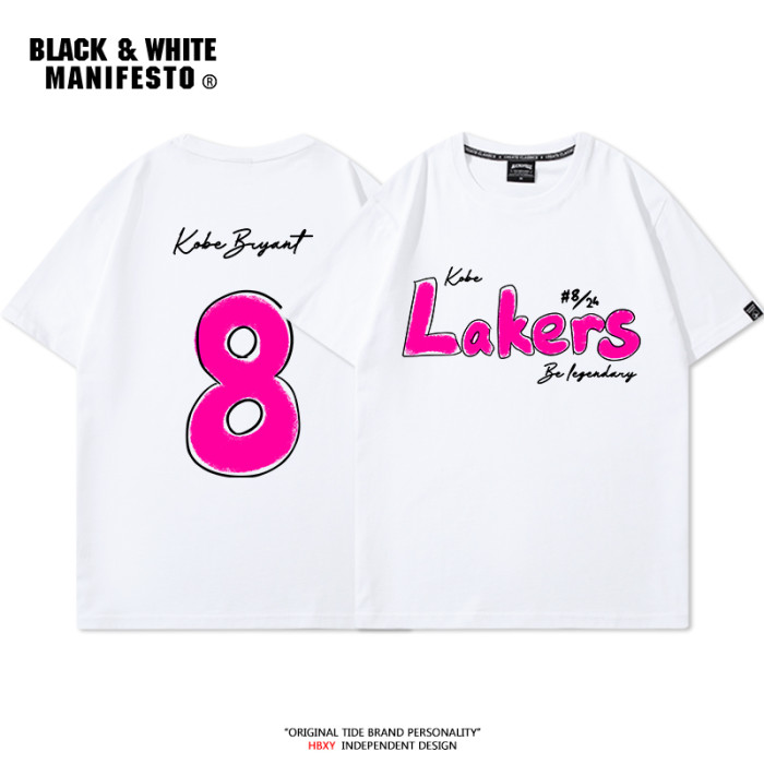 科比24號紀念印花短袖男t恤8號籃球運動寬松休閒打底半袖夏季潮流