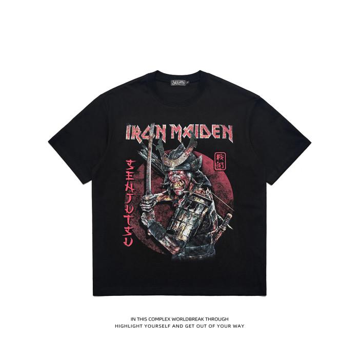 落肩寬松圓領純棉印花短袖透氣重磅男T恤鐵娘子動漫卡通夏季半袖