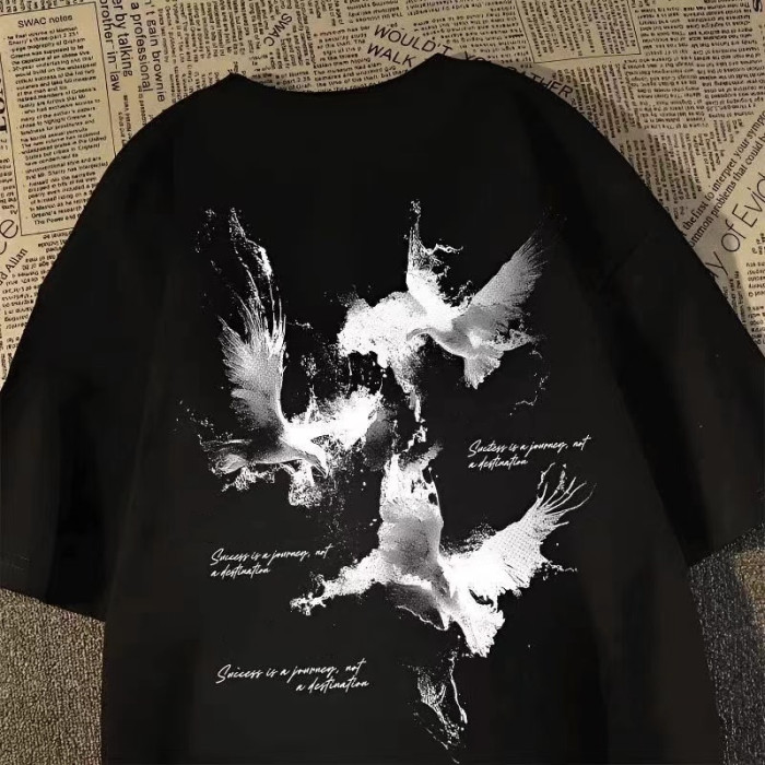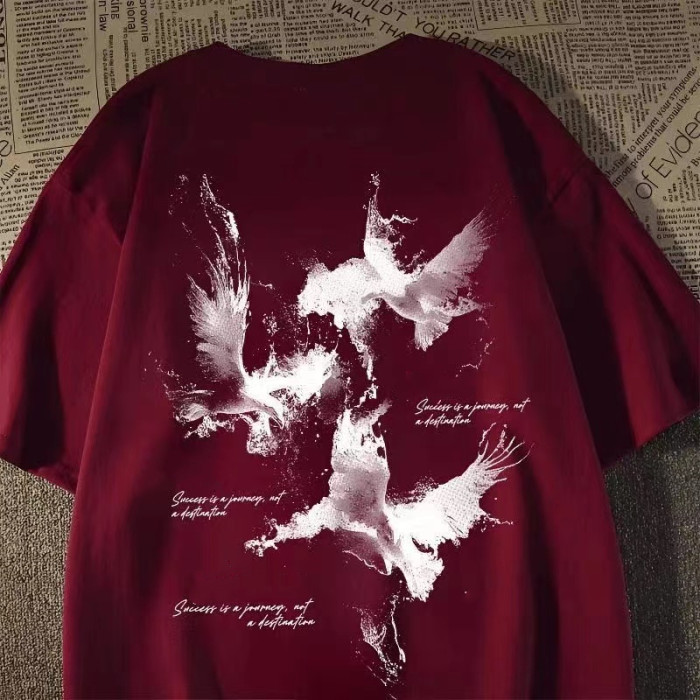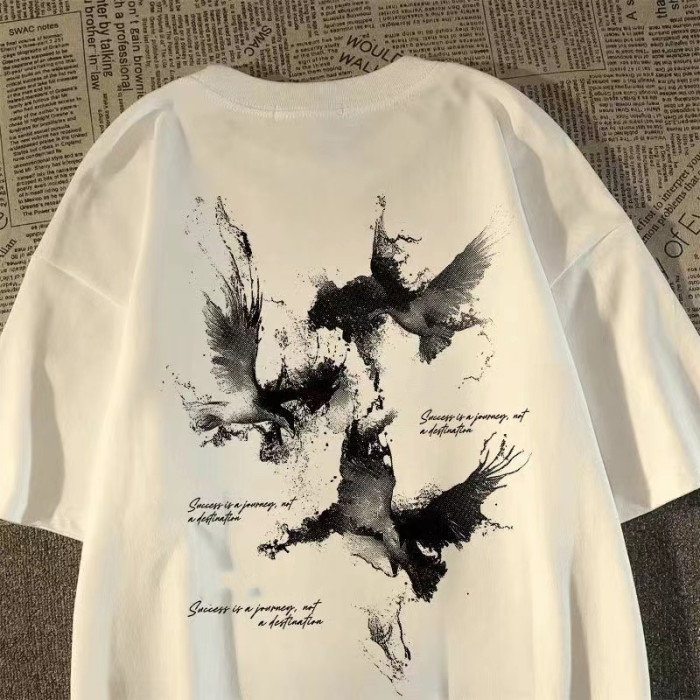 100%純棉美式高街hiphop短袖男T恤潮牌夏季ins飛鷹痞帥青少年體恤