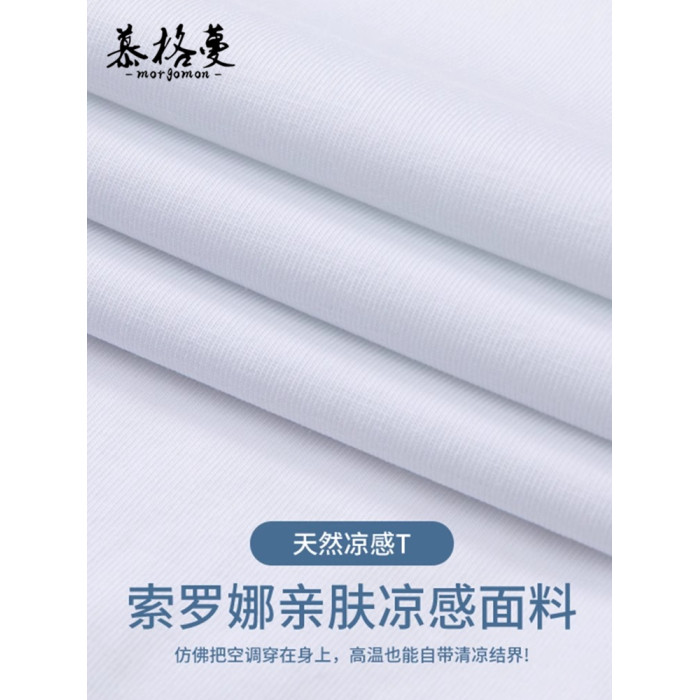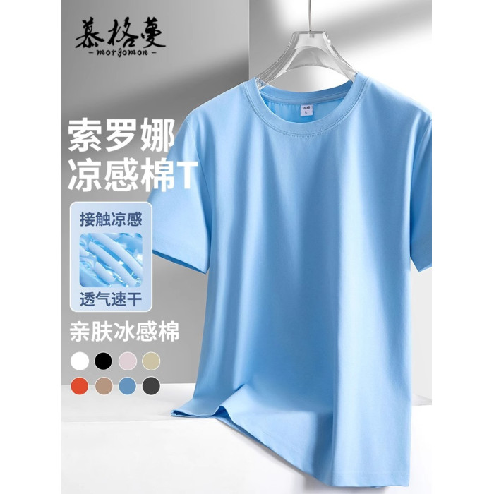 冰絲速乾T恤男士純色2025新款冰氧吧圓領涼感男t恤短袖打底體恤衫