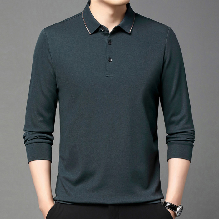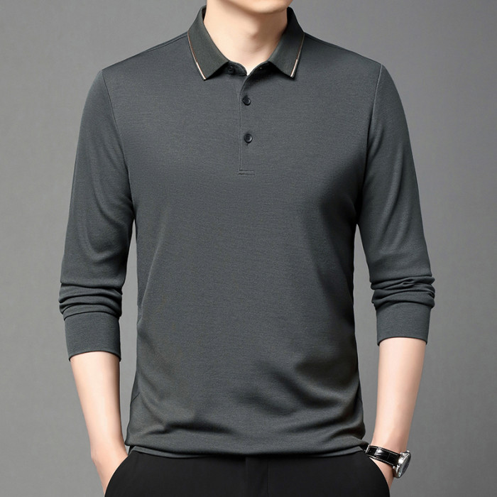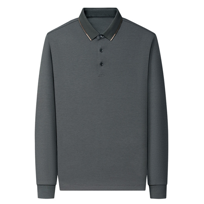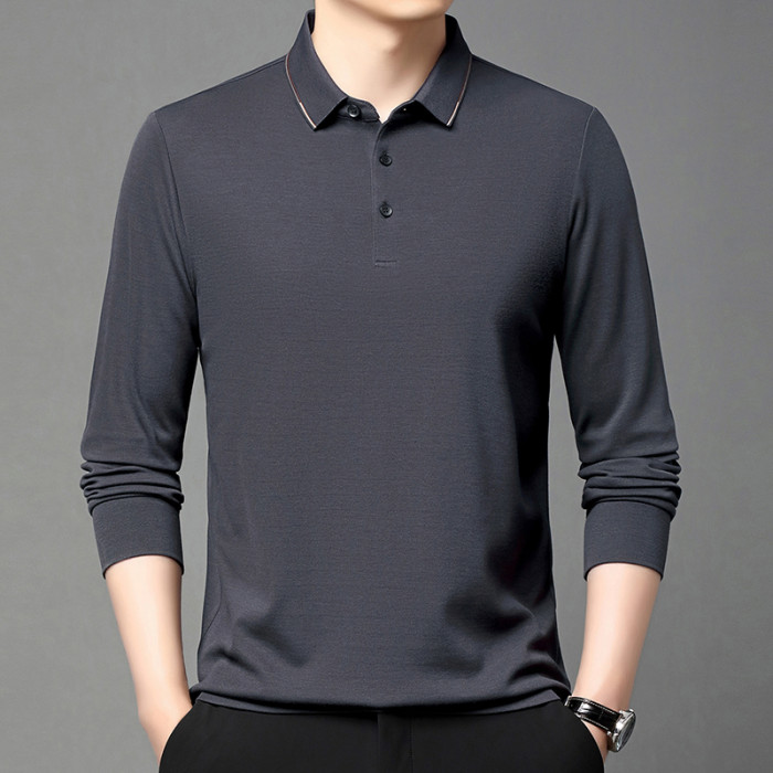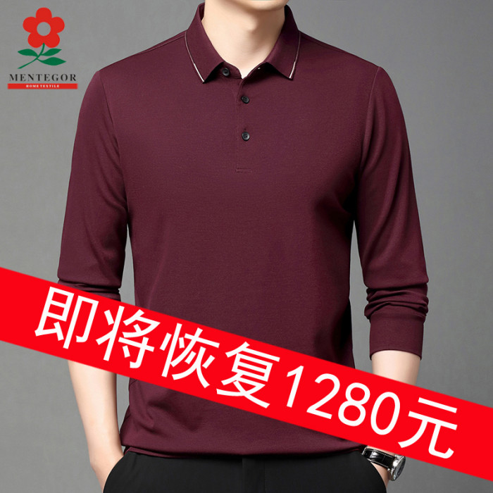 夢特驕品牌高檔桑蠶絲polo衫長袖男t恤春季中年商務翻領寬松體血