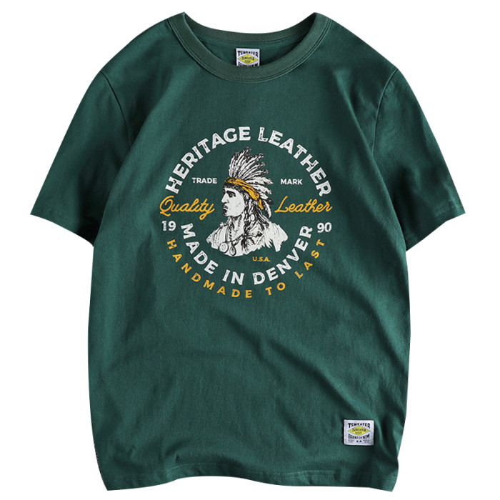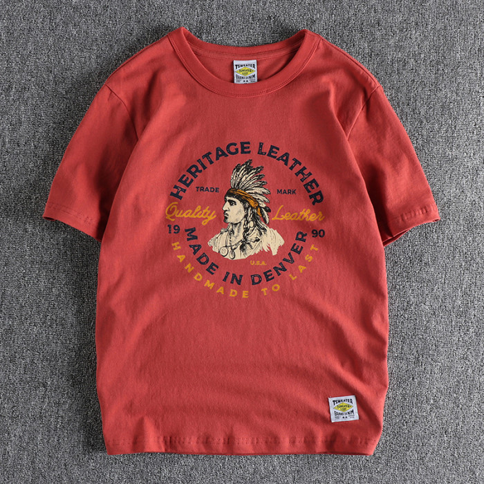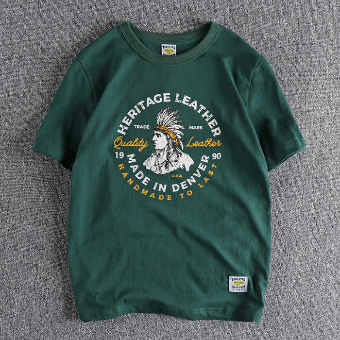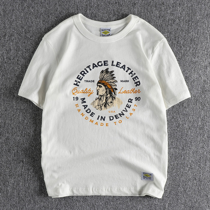 美式潮流a復古印第安圖案短袖男T恤 水洗磨毛棉圓領內搭衣半袖tee