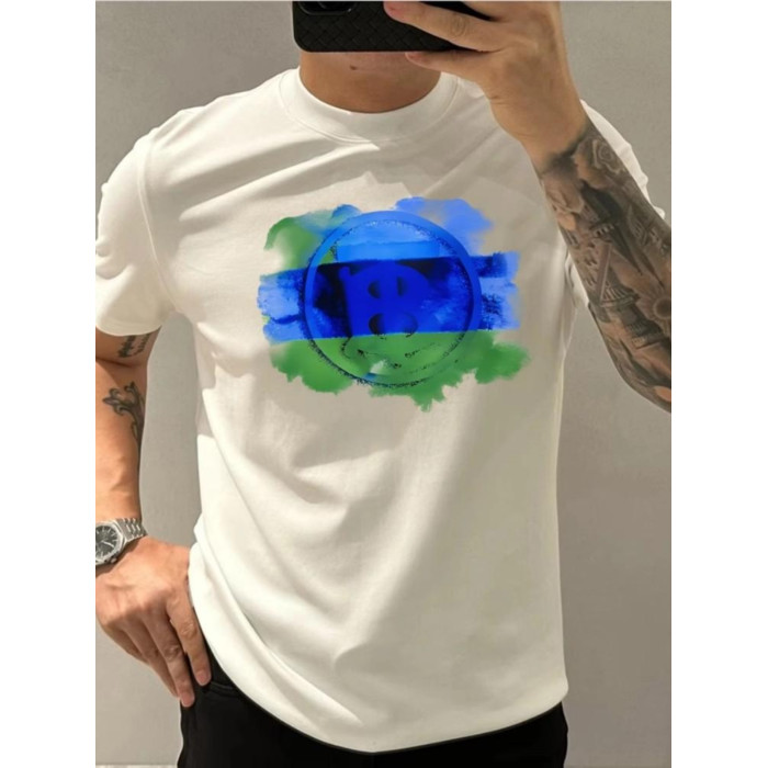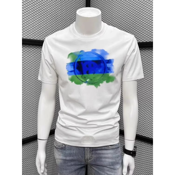 2025夏新款輕奢歐貨涼感簡約純色款修身個性圓領青年潮牌型男T恤