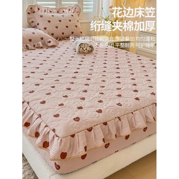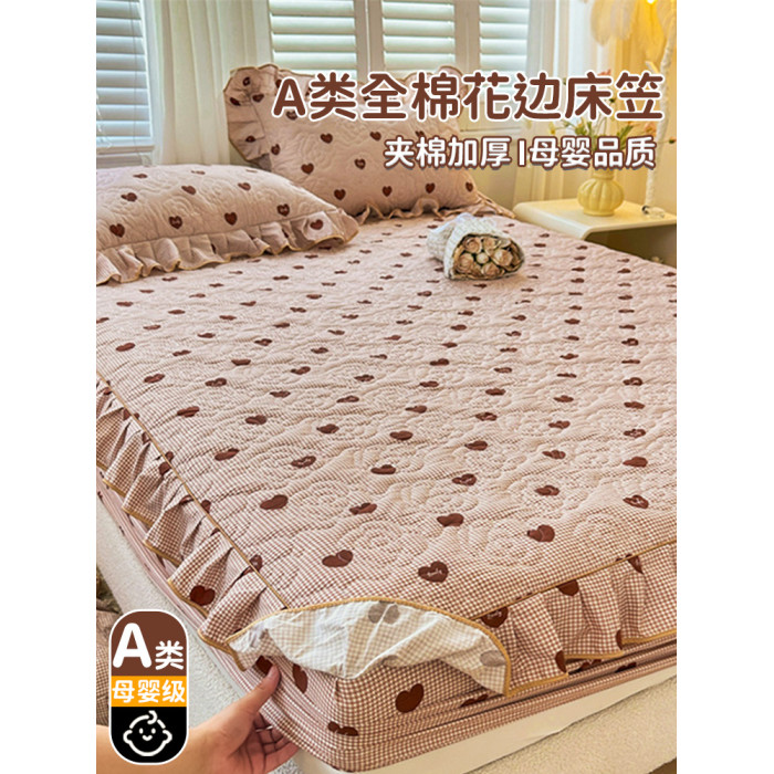 100全棉夾棉床笠單件春夏季純棉小清新公主風花邊床罩三件套床墊
