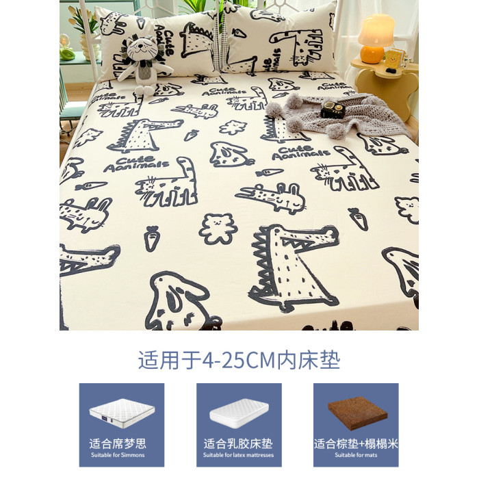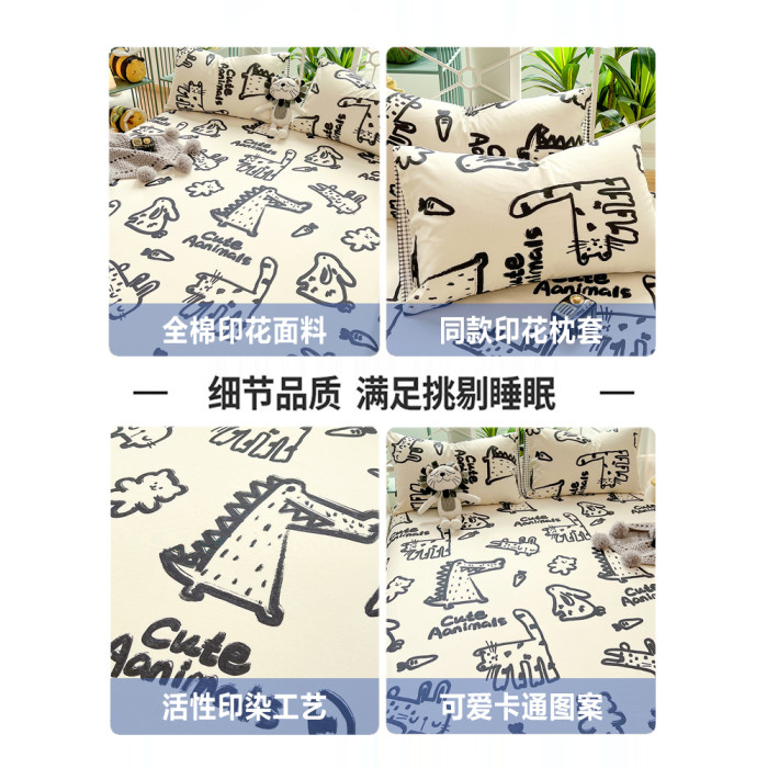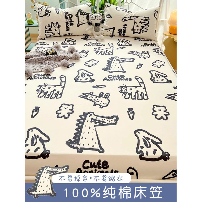 簡筆畫純棉床笠罩單件1.5米床墊套全棉兒童1.2米床單人床罩三件套