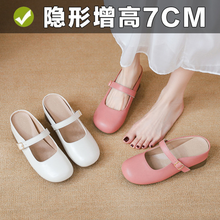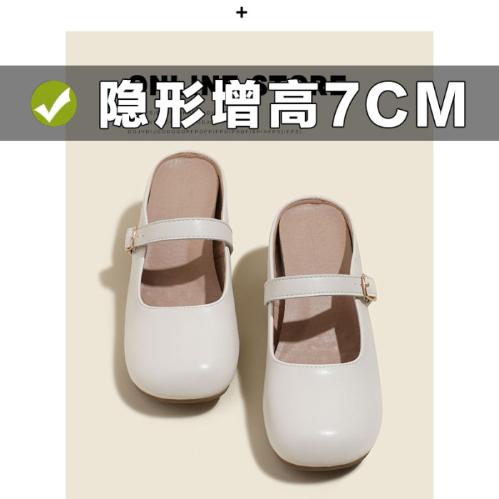 內增高7CM平軟底粗跟瑪麗珍女鞋新款包頭半拖單鞋女夏季小碼32334