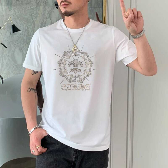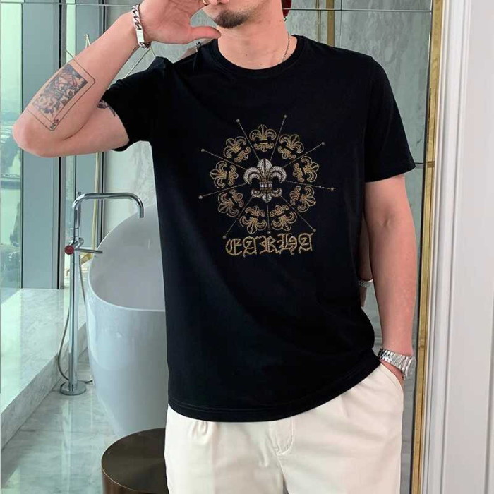 夏季新款時尚短袖男T恤高級潮牌十字架燙鑽潮流ins歐貨修身體恤衫