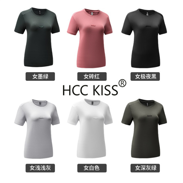 HCC KISS夏季新款純色男T恤速乾休閒跑步女款吸汗彈力情侶款運動