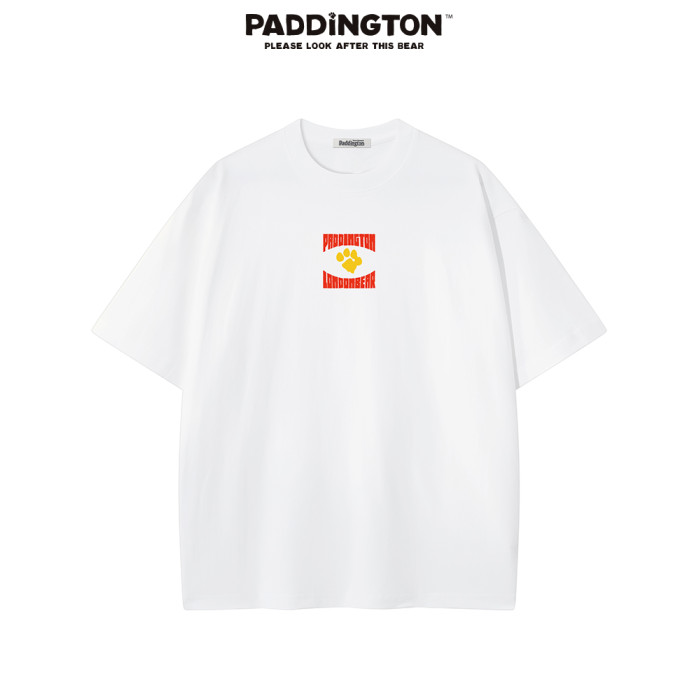 帕丁頓熊簡約小熊爪印花百搭純磅圓領落肩短袖男T恤女情侶同款