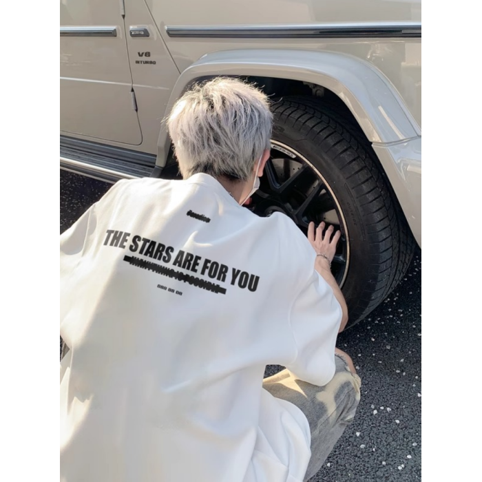 美式字母印花重磅純棉短袖男t恤夏季潮牌休閒寬松百搭簡約打底衫