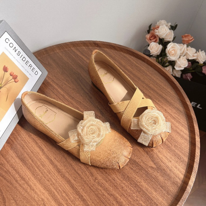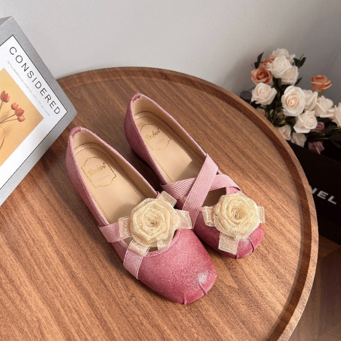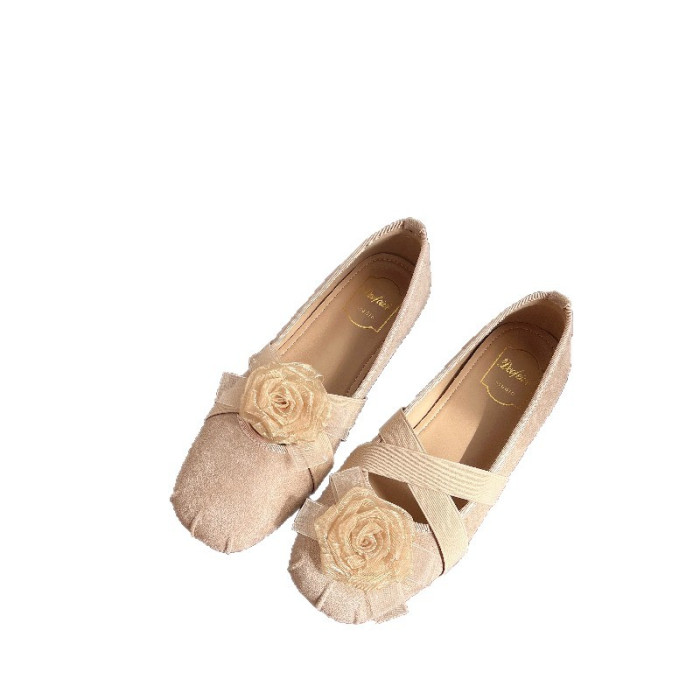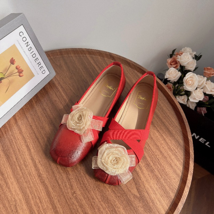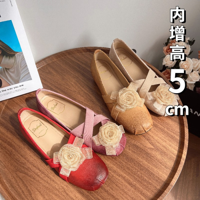 法式溫柔芭蕾風少女單鞋軟底復古山茶花公主圓頭小香風5cm內增高