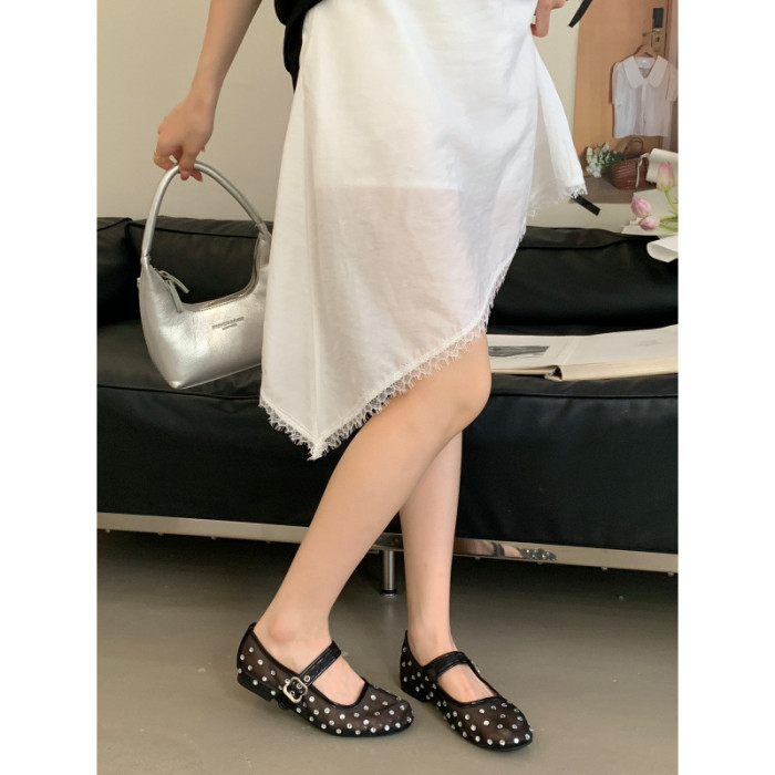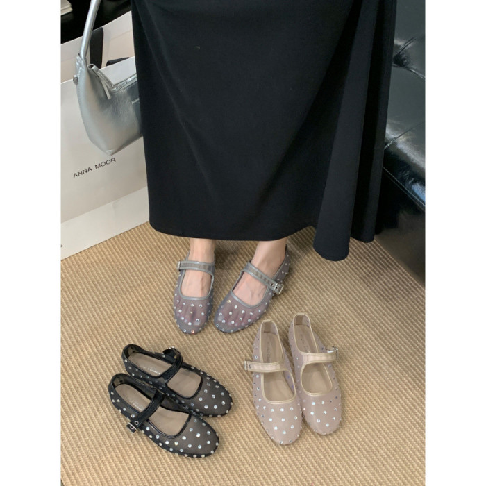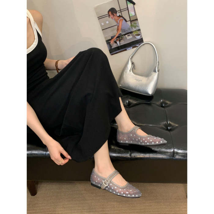 2025年夏季新款小衆平底軟底網面涼鞋水鑽舒適沙灘羅馬鞋女