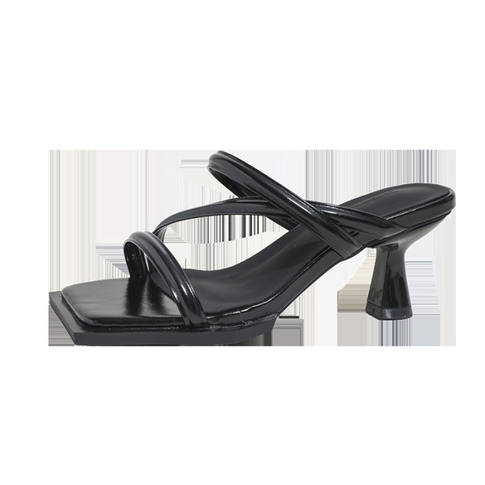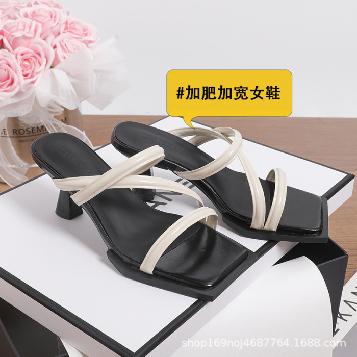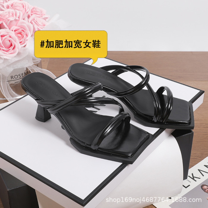 919-2加寬加肥大碼女性法式交叉涼拖女新款細跟方頭兩穿高跟涼鞋