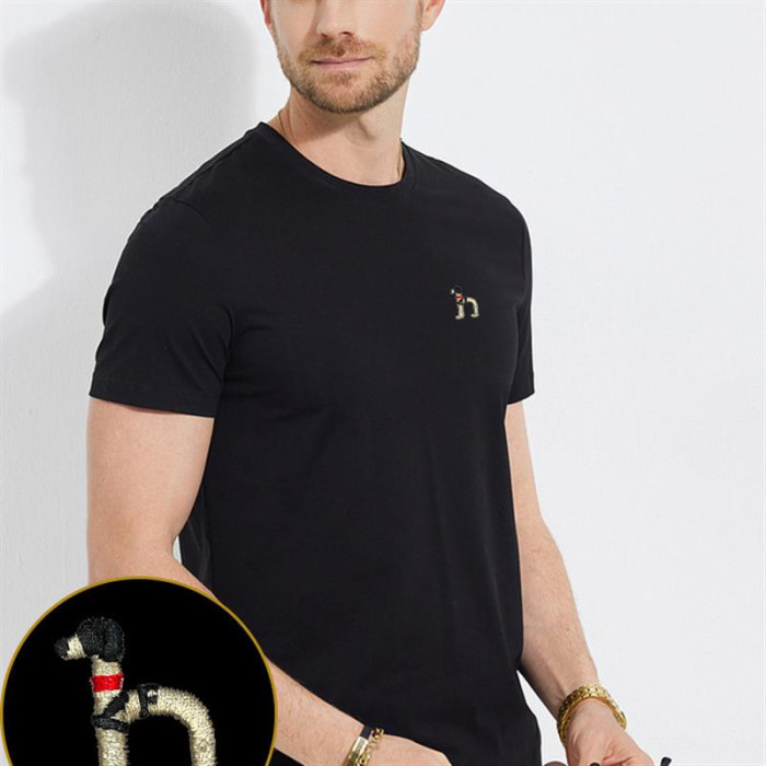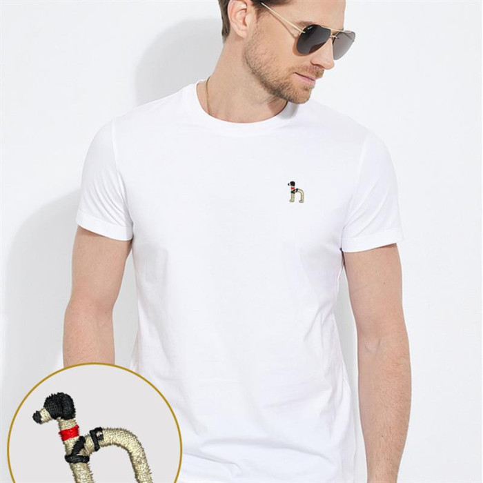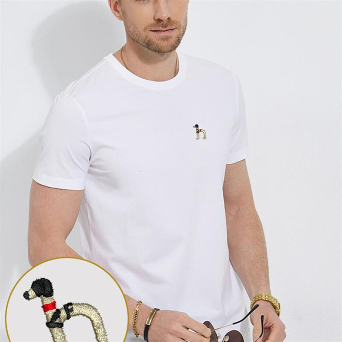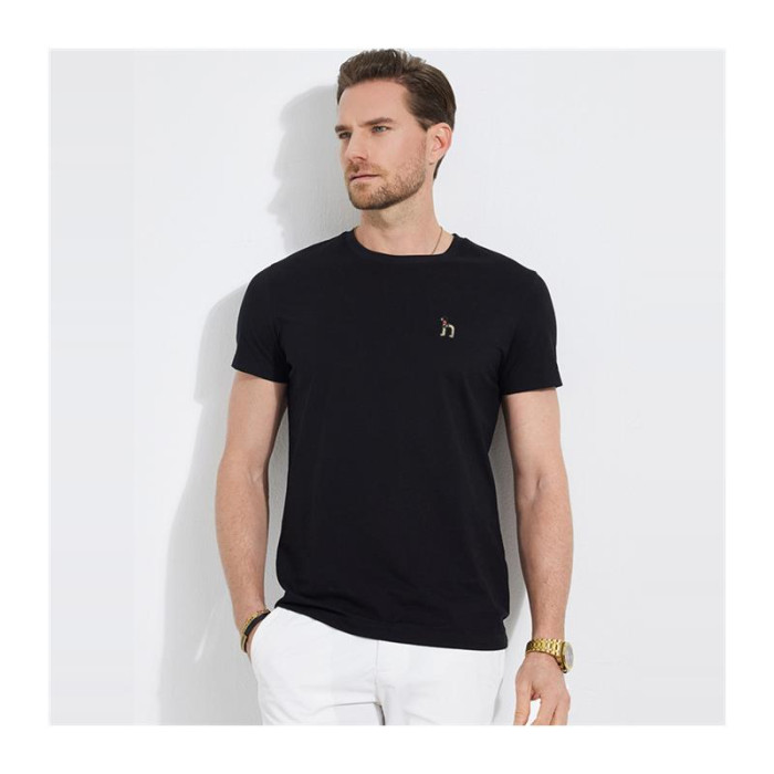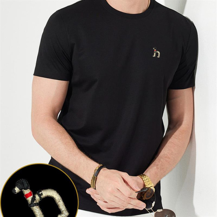 夏日新品 簡約輕奢品質絲光棉涼感短袖男T恤刺綉精緻舒適圓領體恤