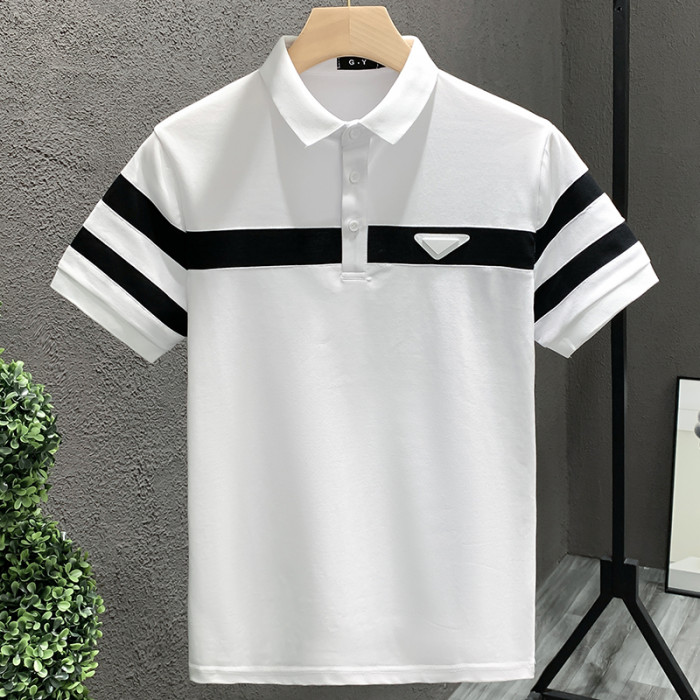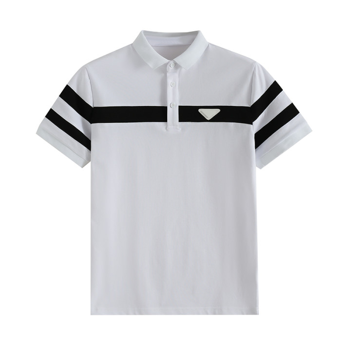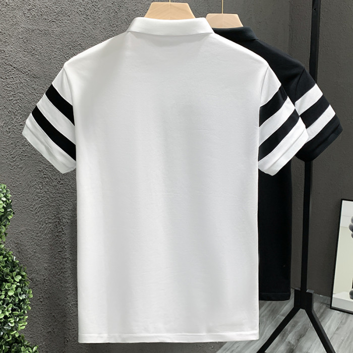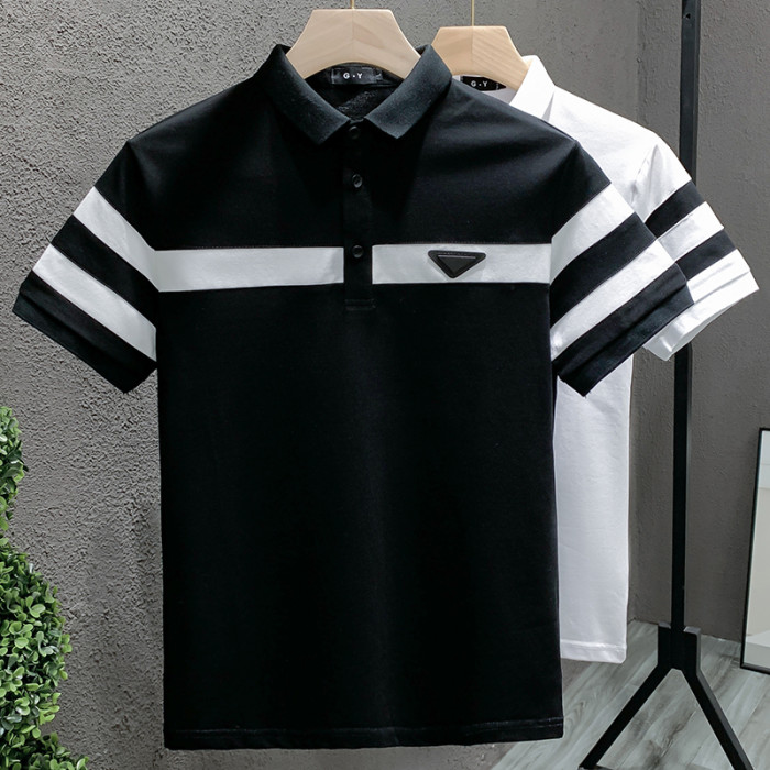 歐貨網紅爆款黑白條紋翻領輕奢男T恤短袖polo衫潮牌痞帥百搭上衣