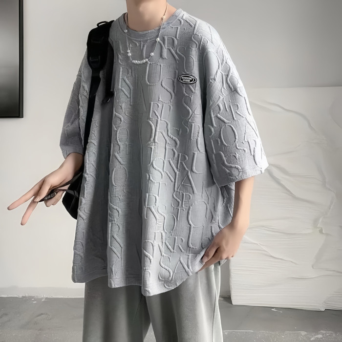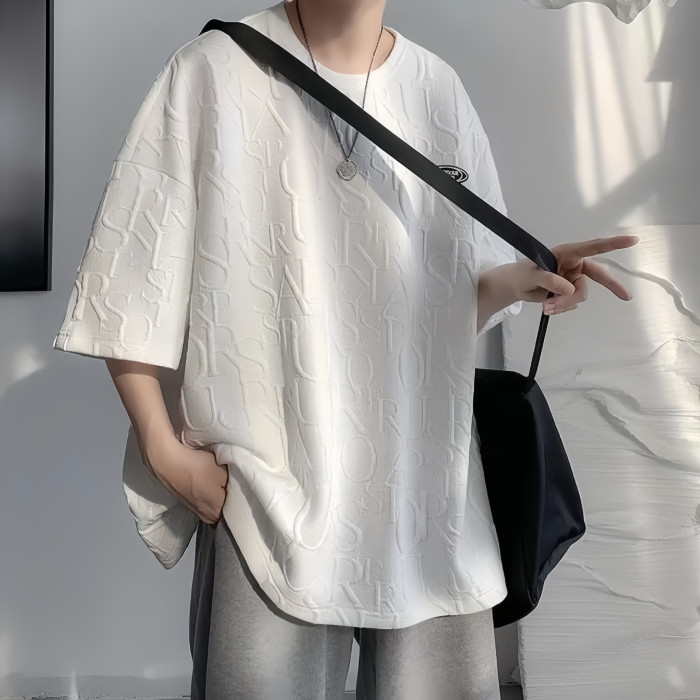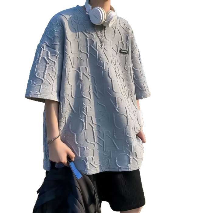 華夫格立體男士t恤港風設計感短袖男T恤潮牌夏季潮流小衆寬松