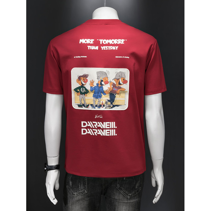 後背卡通印花2025年新款寬松短袖男T恤百搭打底衫2025年春夏新款
