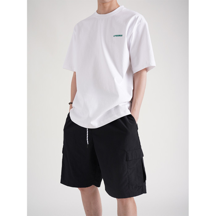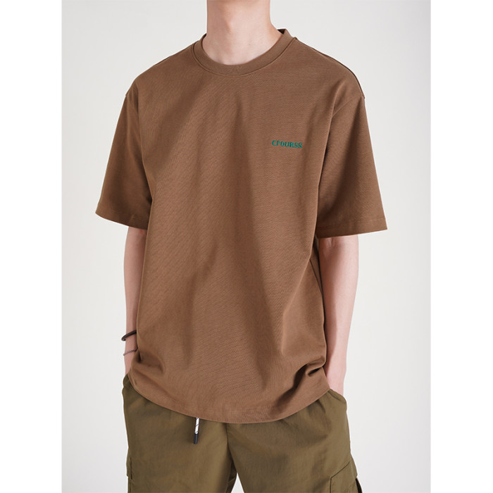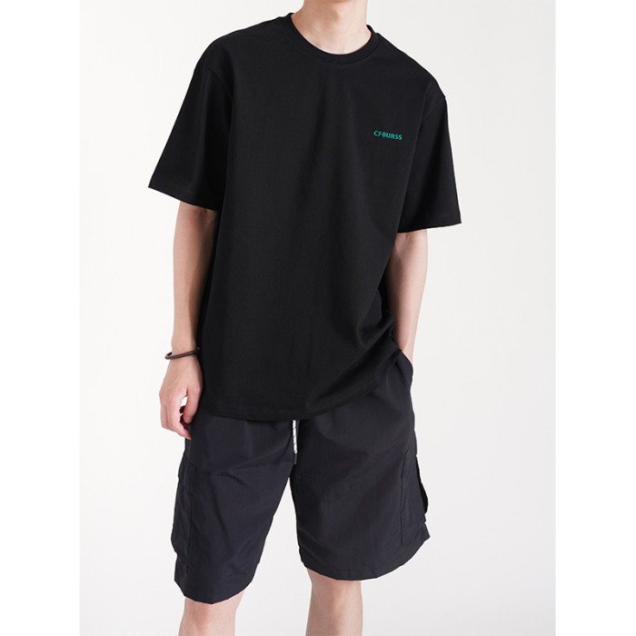 CFOURSS 純色男款針織字母 青少年男t恤短袖夏季2024新款