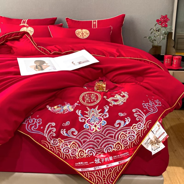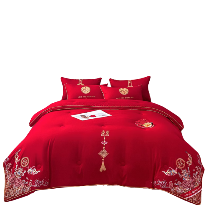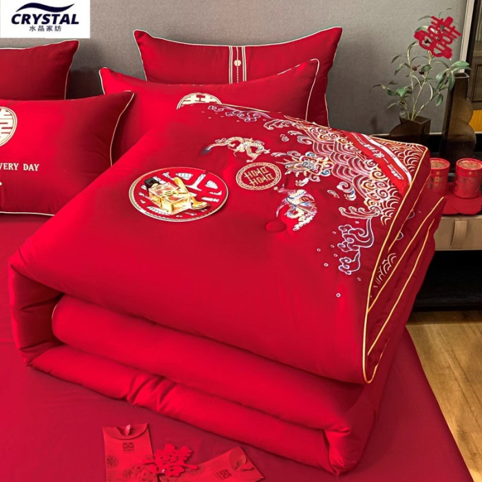 水晶家紡結婚陪嫁大紅色喜慶純棉單雙人大豆被子四季通用冬季加厚