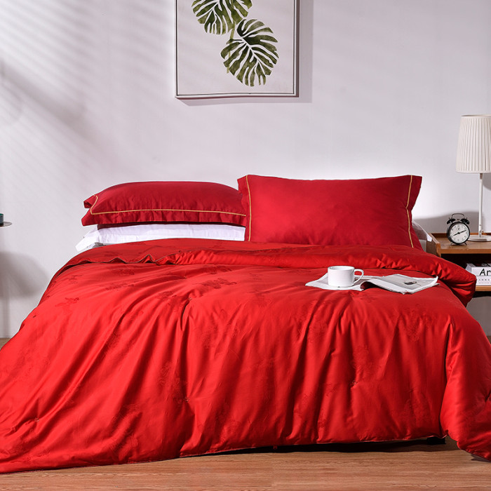 全棉蠶絲被喜被柞蠶絲結婚陪嫁大紅被子婚被婚慶手工絲綿子母被芯