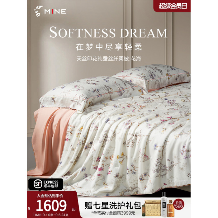 MINECASA/寐100支天絲蠶絲被100桑蠶絲夏涼被春夏純蠶絲被子 花海