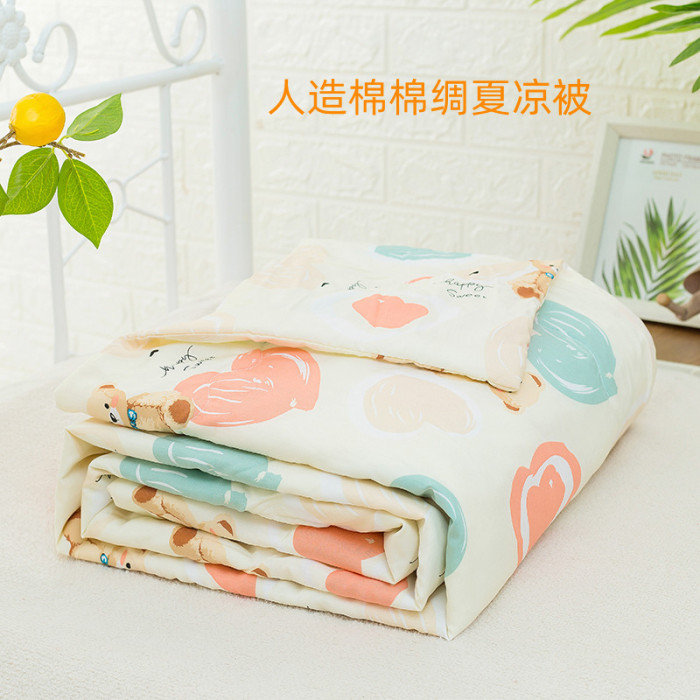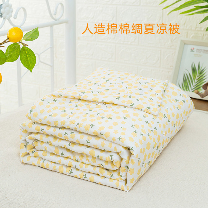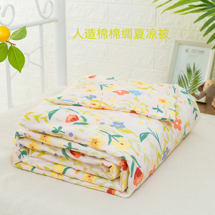 夏季新品山東人造棉棉綢夏涼被機洗韓香綢單人夏被柔軟棉綢夏涼被