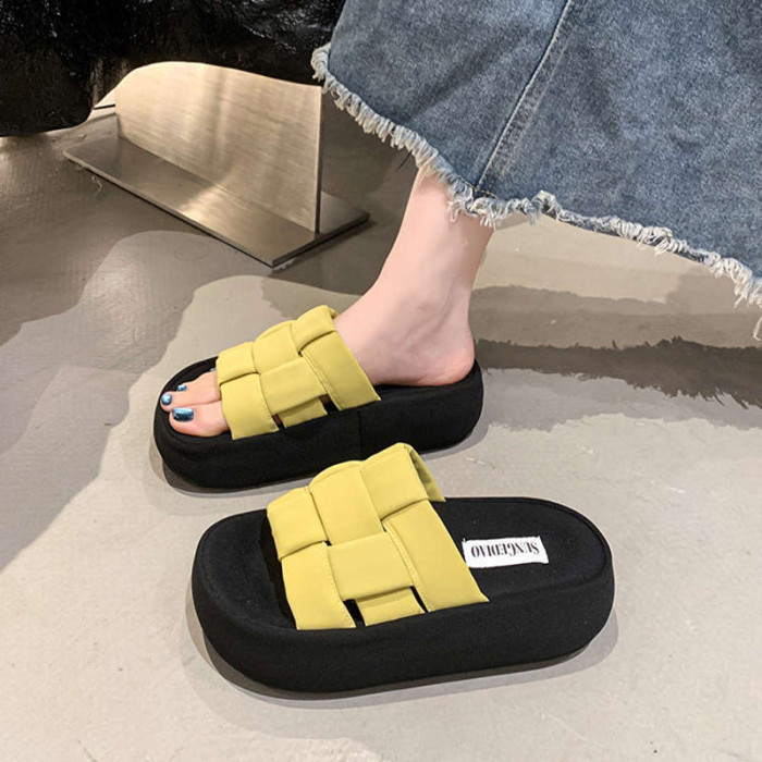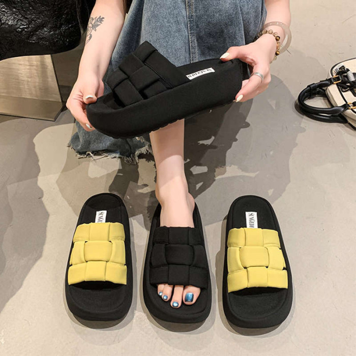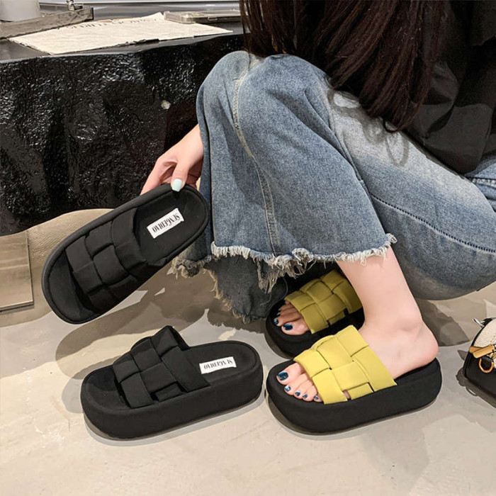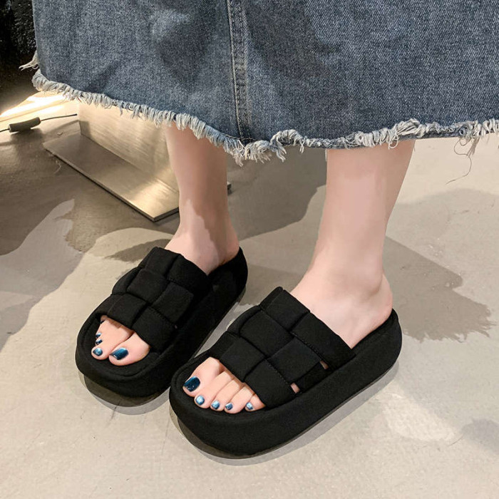 編織厚底涼拖鞋女外穿2025新款夏季百搭增高爆款拖鞋ins潮一字拖