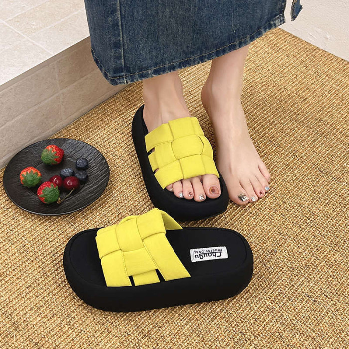 2025新款厚底一字拖鞋女夏外穿帆布涼拖時尚配裙子沙灘涼鞋女鞋子