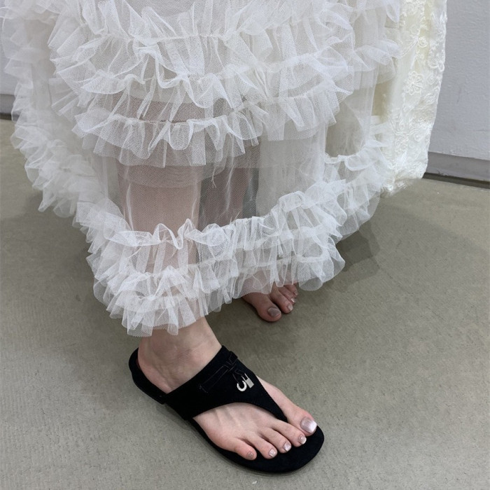 法式黃色夾趾粗跟人字拖鞋女夏外穿時尚百搭仙女夾腳低跟涼拖