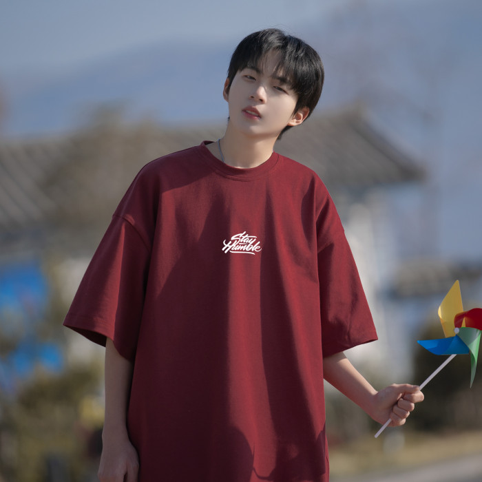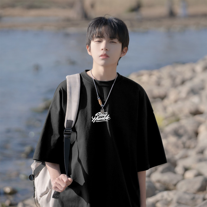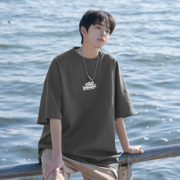 短袖男t恤上衣文藝風字母純棉260g重磅ins潮流小衆半袖2025夏款