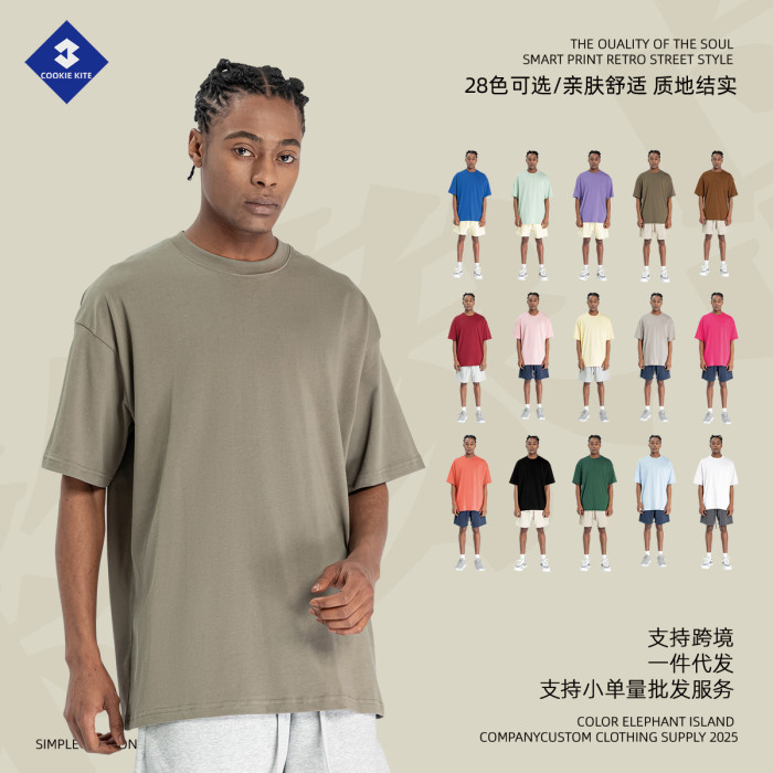 KITE男裝丨美式潮牌重磅230G休閒短袖男t恤落肩寬松抗菌純棉男t恤
