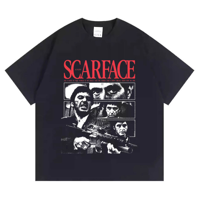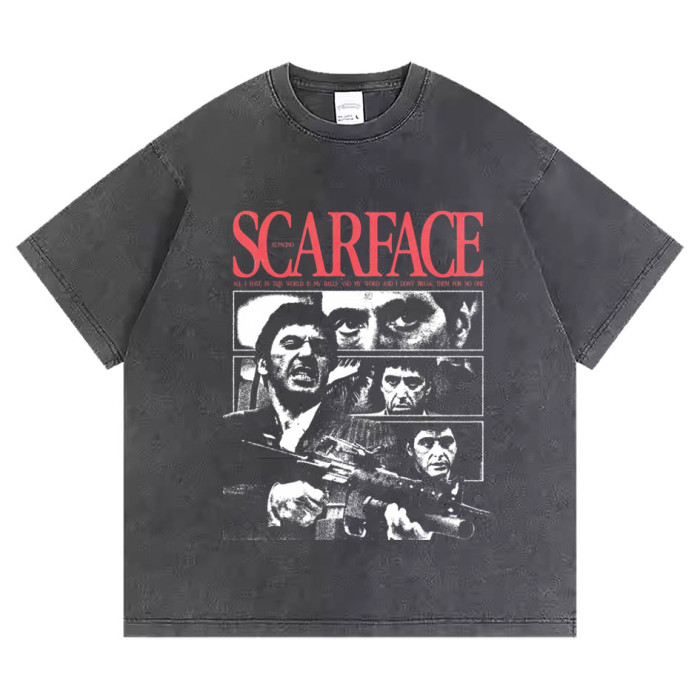 疤面煞星Scarface Al Pacino教父純棉水洗復古人物長袖短袖男T恤