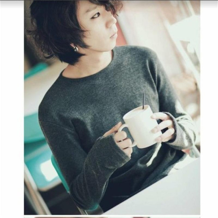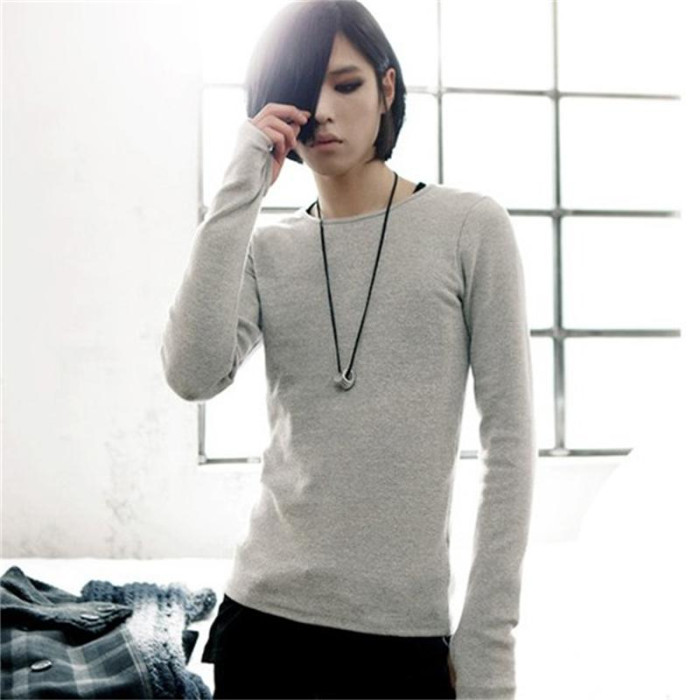 秋冬季韓版新款時尚潮男套手指磨毛保暖長袖T恤打底百搭大碼男t恤