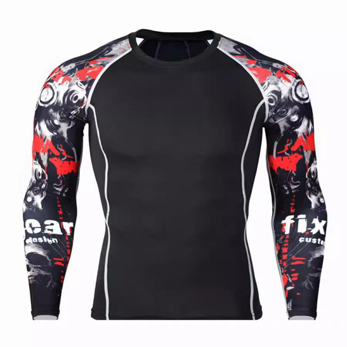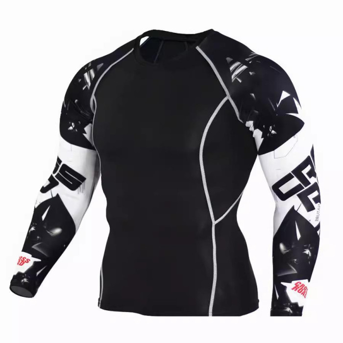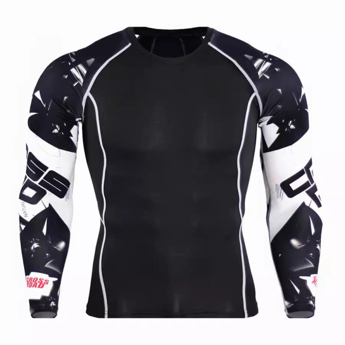 花臂運動速乾健身衣男T恤籃球跑步健身服彈力訓練壓縮衣