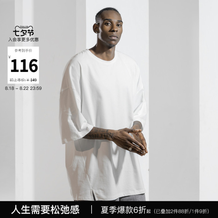 潮牌短袖男t恤oversize美式純棉運動體恤純色上衣潮