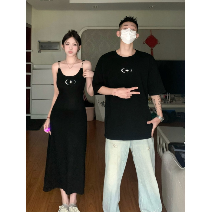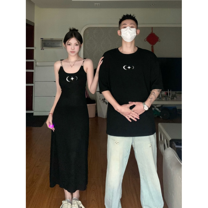 甜辣風情侶裝夏一裙一衣高級感潮牌短袖男t恤女吊帶長裙2025新款