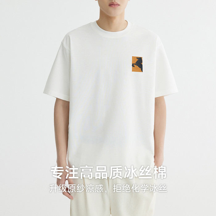 速乾冰絲棉 圓領印花涼感男t恤短袖夏季新款潮透氣半袖體恤衫
