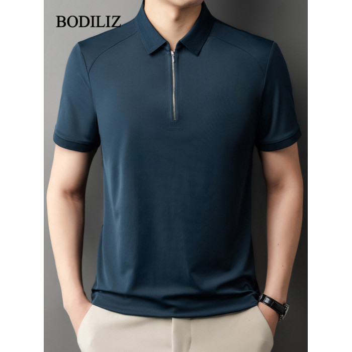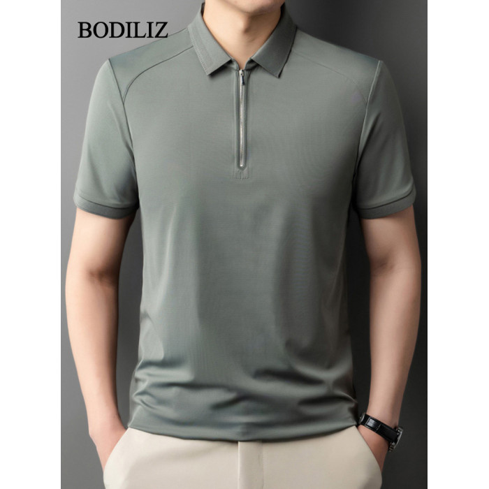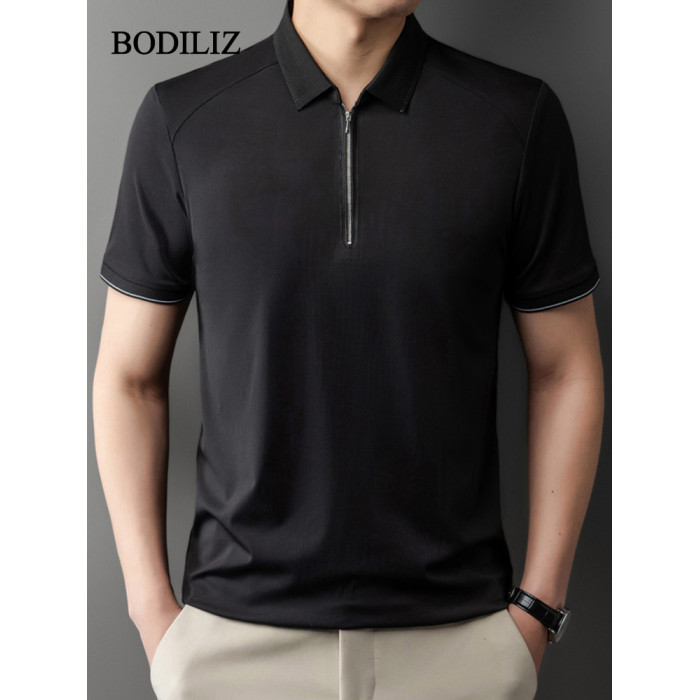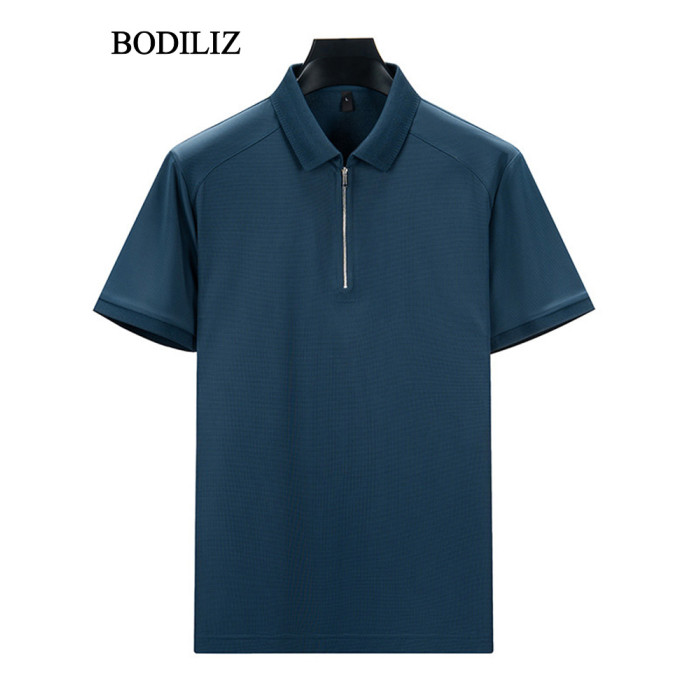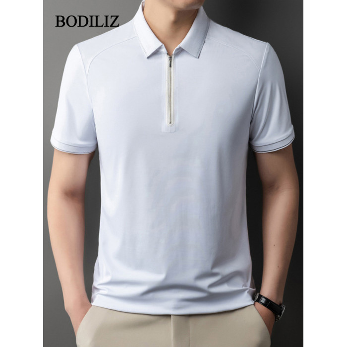 奢侈品速乾冰絲白色商務polo衫男士短袖t恤夏薄款中年免燙抗皺T恤