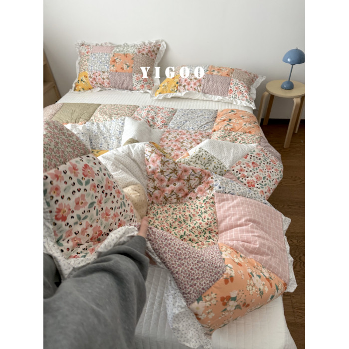 韓國純手工百福拼布碎花格子純棉春秋四季被子高級韓系百家被柔軟