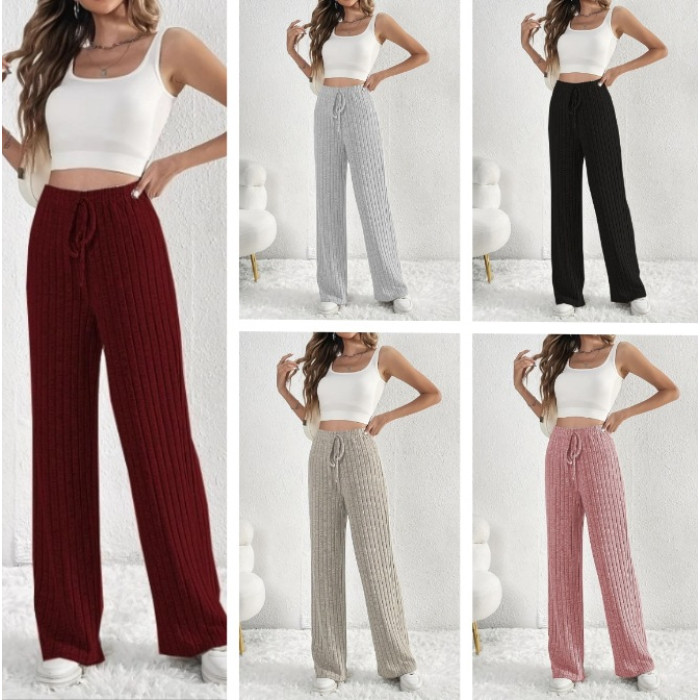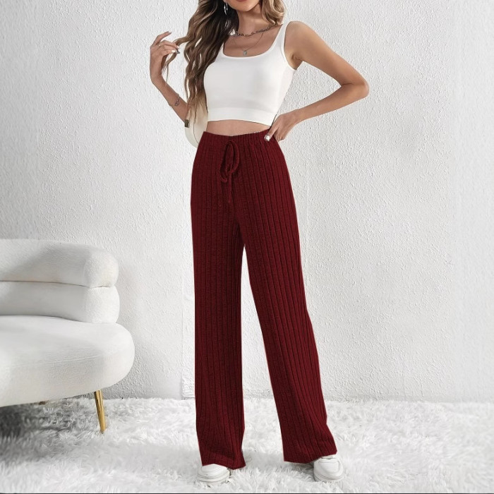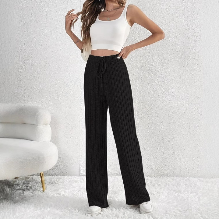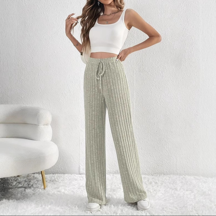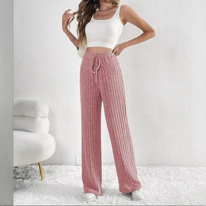 正 女春秋2025新款坑條衛褲高腰顯瘦垂感休閒百搭濶腿褲