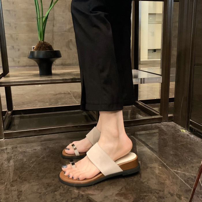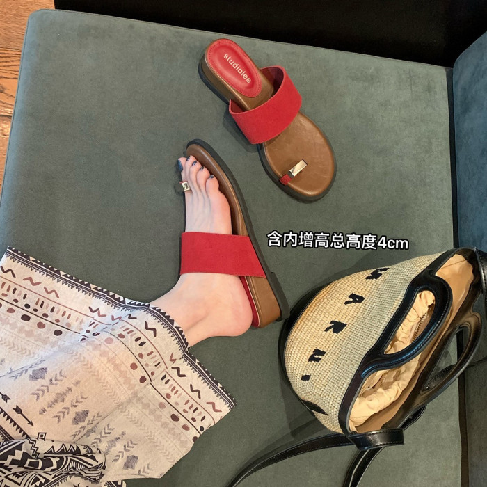 葡萄媽同款~ 增高4cm~一字帶外穿套趾人字平底夾趾涼拖鞋女夏